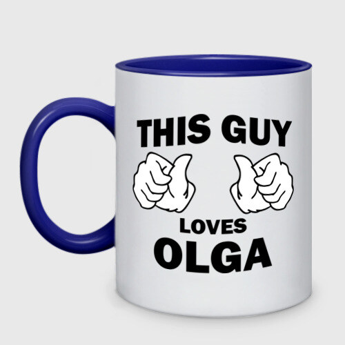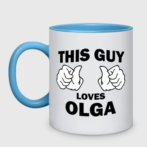 Кружка двухцветная с принтом Этот парень любит Ольгу