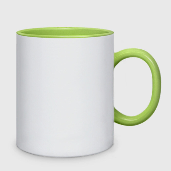 Двухцветная кружка — белая снаружи, с яркой заливкой внутри и цветной ручкой. Есть вариант, когда окрашена лишь кайма сверху, а внутренняя часть остается белой. Кружка изготовлена из высококачественной белой керамики, подойдет как для холодных, так и для горячих напитков. Принт наносится на бока кружки, можно сделать со своим дизайном: два разных изображения или только с одной стороны.