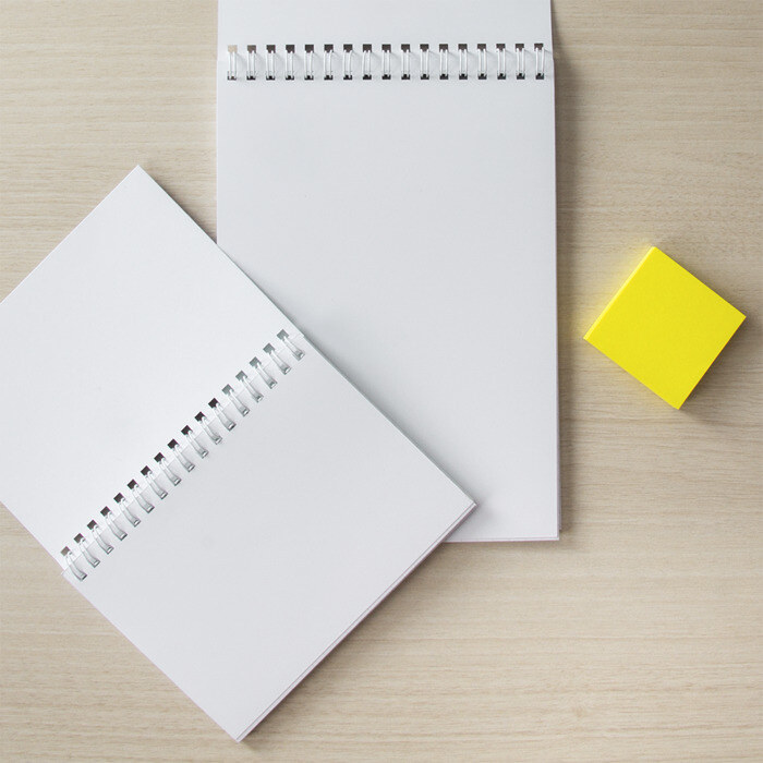 Блокнот на спирали в двух размерах: А5 с пружинкой сверху или А6 с пружинкой сбоку. Есть блокноты в клетку, просто с белыми страницами, с точками и в крупную клетку. Такие блокноты сделают жизнь веселее, потому что теперь их можно купить с самыми разными принтами и даже со своим дизайном.