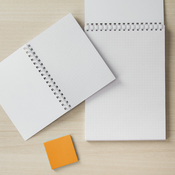 Блокнот на спирали в двух размерах: А5 с пружинкой сверху или А6 с пружинкой сбоку. Есть блокноты в клетку, просто с белыми страницами, с точками и в крупную клетку. Такие блокноты сделают жизнь веселее, потому что теперь их можно купить с самыми разными принтами и даже со своим дизайном.