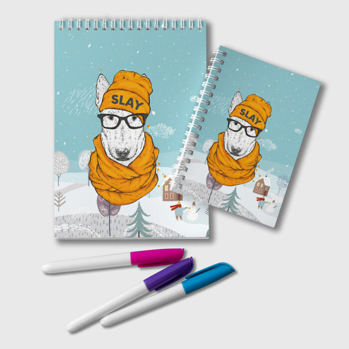 Блокнот на спирали в двух размерах: А5 с пружинкой сверху или А6 с пружинкой сбоку. Есть блокноты в клетку, просто с белыми страницами, с точками и в крупную клетку. Такие блокноты сделают жизнь веселее, потому что теперь их можно купить с самыми разными принтами и даже со своим дизайном.