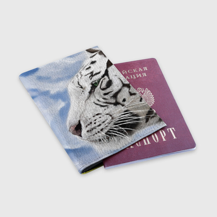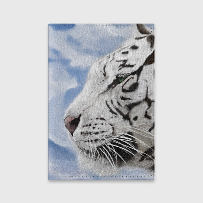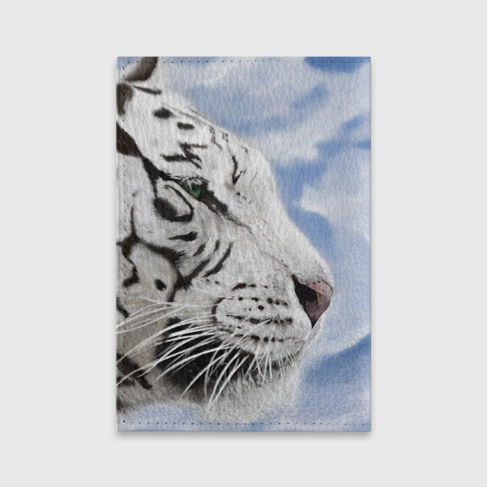 Обложка для паспорта матовая кожа с принтом Белый тигр