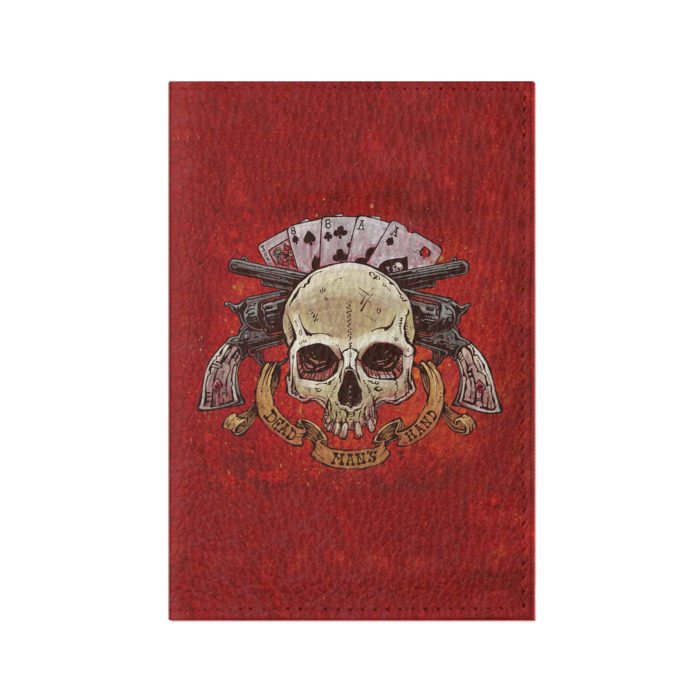 Обложка для паспорта матовая кожа Карты, череп, два ствола