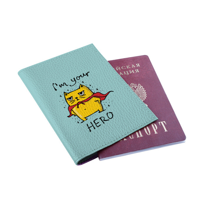 Обложка для паспорта матовая кожа с принтом Я твой герой