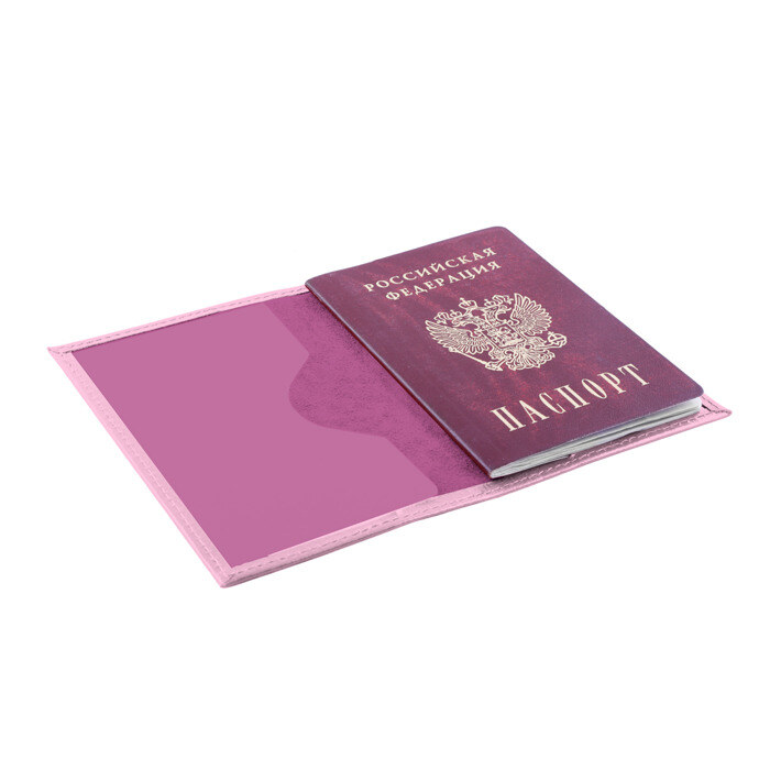 Обложка для паспорта сделана из натуральной матовой кожи с бархатистой внутренней поверхностью. Листы фиксируются прозрачными пластиковыми креплениями.