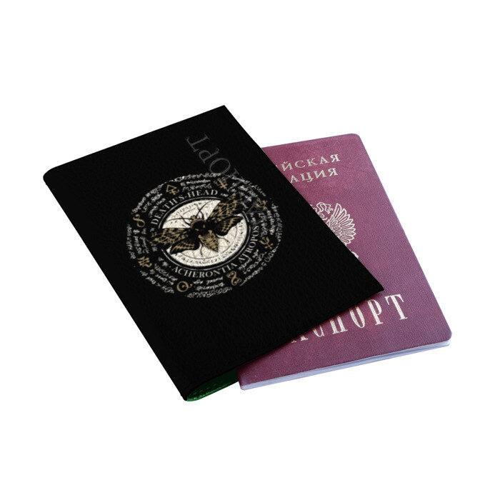 Обложка для паспорта матовая кожа с принтом Бабочка Мертвая голова