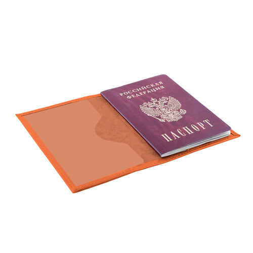Обложка для паспорта сделана из натуральной матовой кожи с бархатистой внутренней поверхностью. Листы фиксируются прозрачными пластиковыми креплениями.
