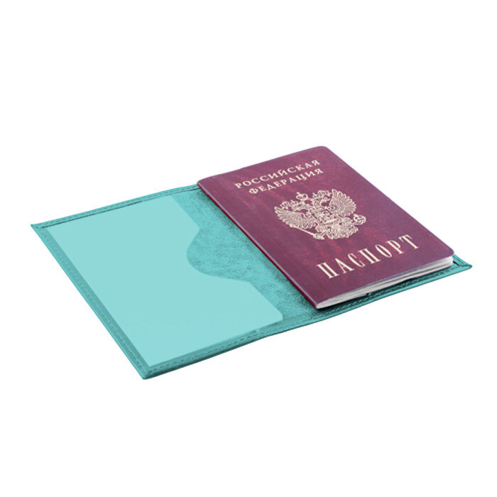Обложка для паспорта сделана из натуральной матовой кожи с бархатистой внутренней поверхностью. Листы фиксируются прозрачными пластиковыми креплениями.