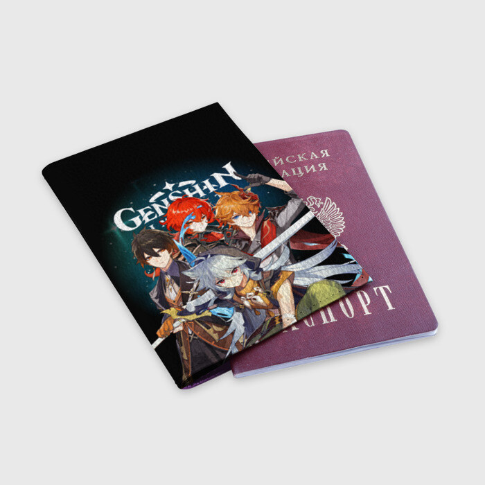 Обложка для паспорта матовая кожа с принтом GENSHIN IMPACT