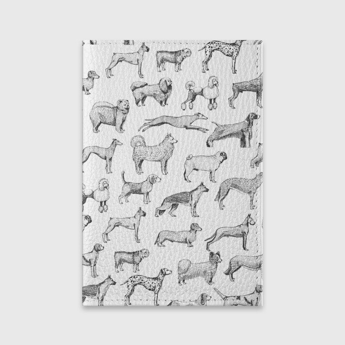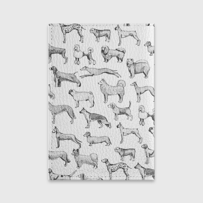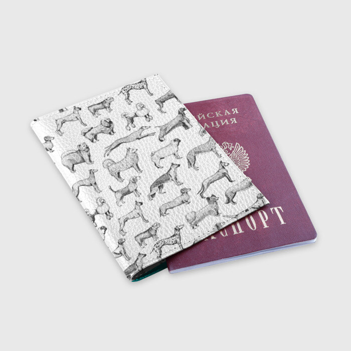 Обложка для паспорта матовая кожа с принтом ПОРОДЫ СОБАК С ФОТОГРАФИЯМИ