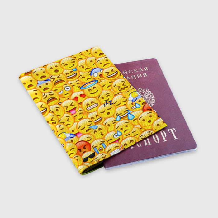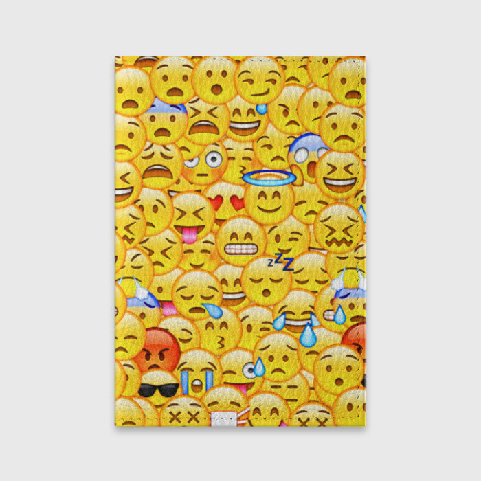 Обложка для паспорта матовая кожа с принтом Emoji