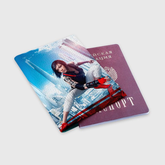 Обложка для паспорта матовая кожа с принтом Mirror`s edge