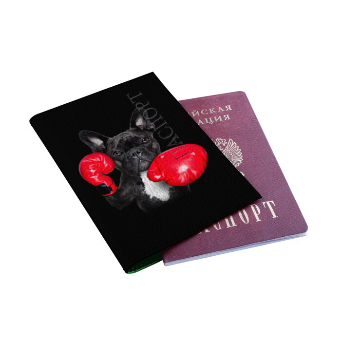 Обложка для паспорта матовая кожа с принтом Французский бульдог