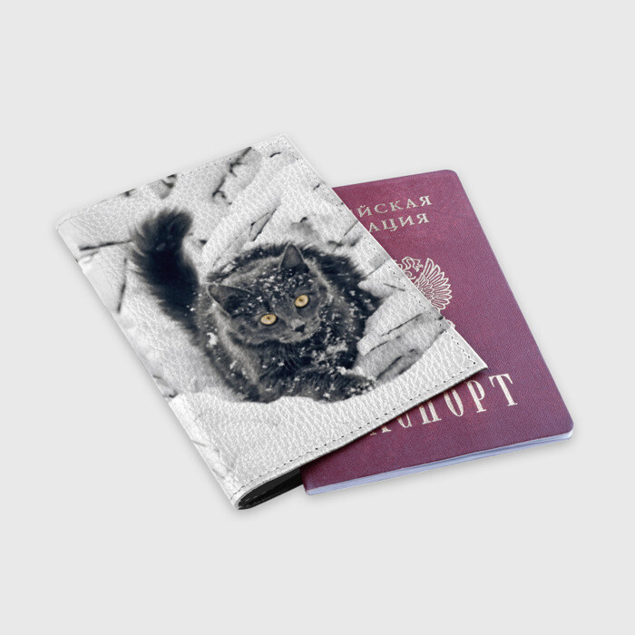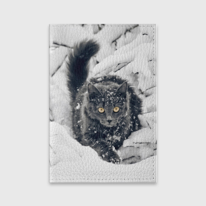 Обложка для паспорта матовая кожа с принтом Кот в снегу