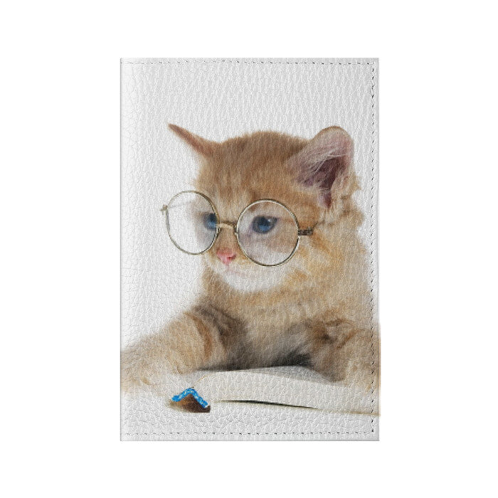 Обложка для паспорта матовая кожа с принтом Кот в очках