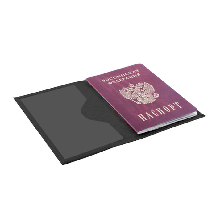 Обложка для паспорта сделана из натуральной матовой кожи с бархатистой внутренней поверхностью. Листы фиксируются прозрачными пластиковыми креплениями.