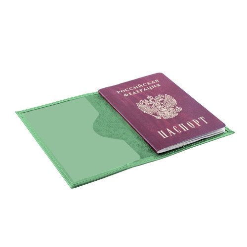 Обложка для паспорта сделана из натуральной матовой кожи с бархатистой внутренней поверхностью. Листы фиксируются прозрачными пластиковыми креплениями.