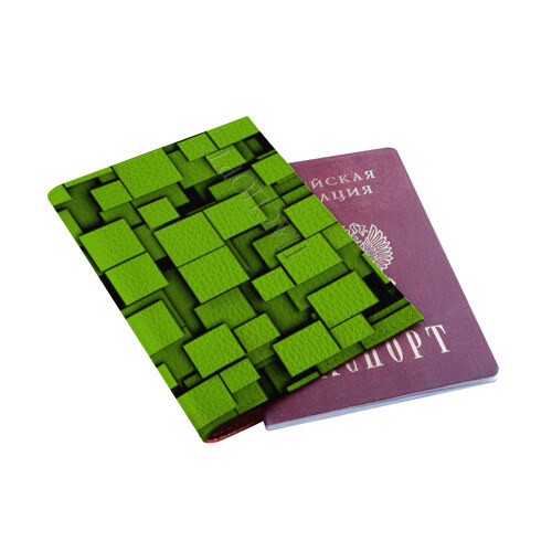 Обложка для паспорта матовая кожа с принтом Зеленые кубики