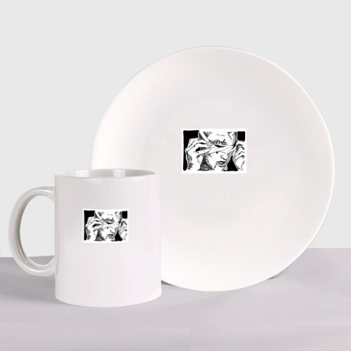 Кружка изготовлена из высококачественной белой керамики. Тарелка изготовлена из фарфора. Принт наносится на бока кружки: два изображения или только с одной стороны. На тарелку принт наносится на плоскую часть.