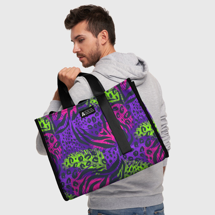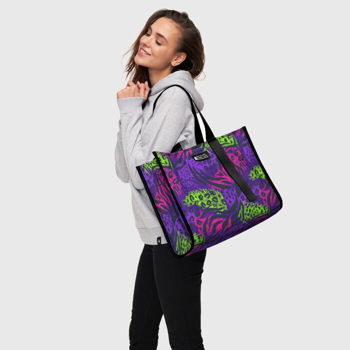 Вместительная сумка-шоппер — стильный и практичный аксессуар. Сделана в стиле унисекс, так что подойдет и девушкам, и парням. Долговечная и прочная — то, что нужно, если вы заботитесь об экологии и хотите отказаться от пластиковых пакетов.