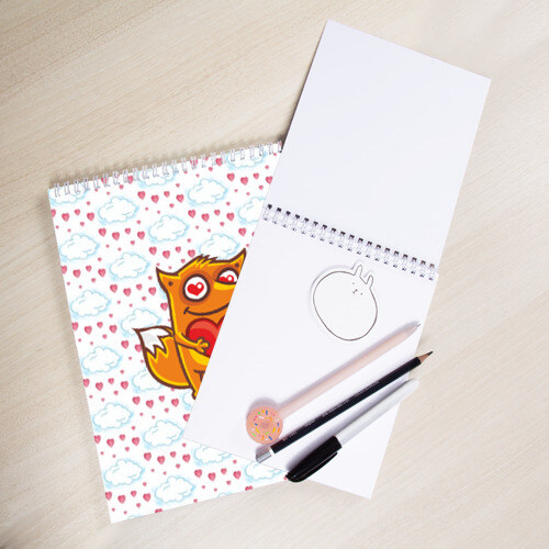 Скетчбук для рисования и записей в двух размерах: для любителей больших форматов — А4, для выбирающих компактность — А5. Листы матовые и белые, без линий, из более плотной бумаги, чем в обычном блокноте, чтобы они не промокали при рисовании фломастером. Всего в скетчбуке 48 листов, защищенных обложкой из мелованного плотного картона.
