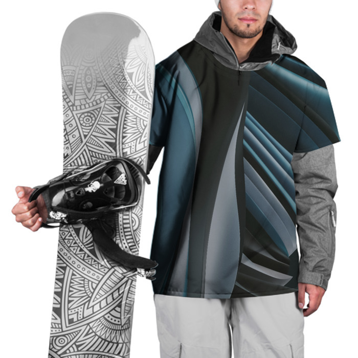 Накидка на куртку 3D Волнообразные синие пластины во тьме