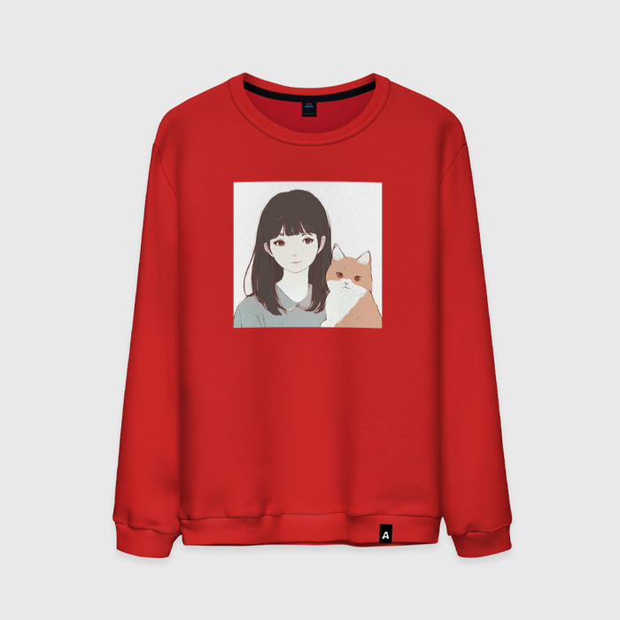 Мужской свитшот хлопок с принтом Девушка с котом