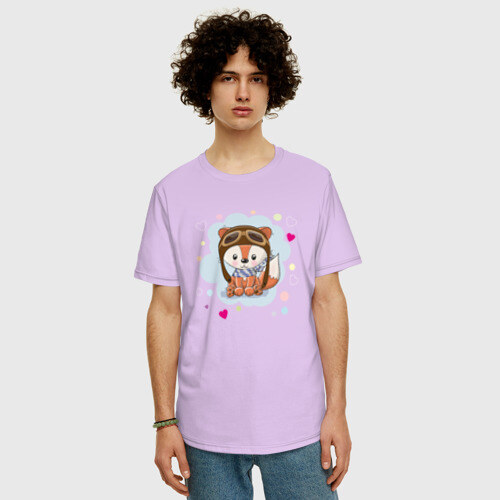 Мужская футболка хлопок Oversize с принтом Лисёнок-пилот