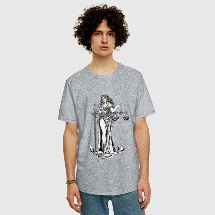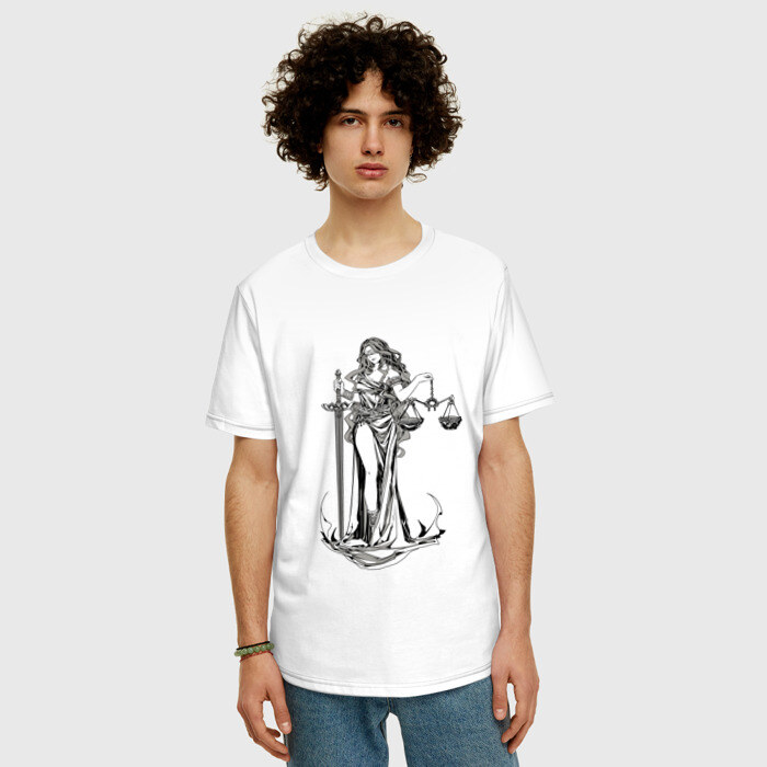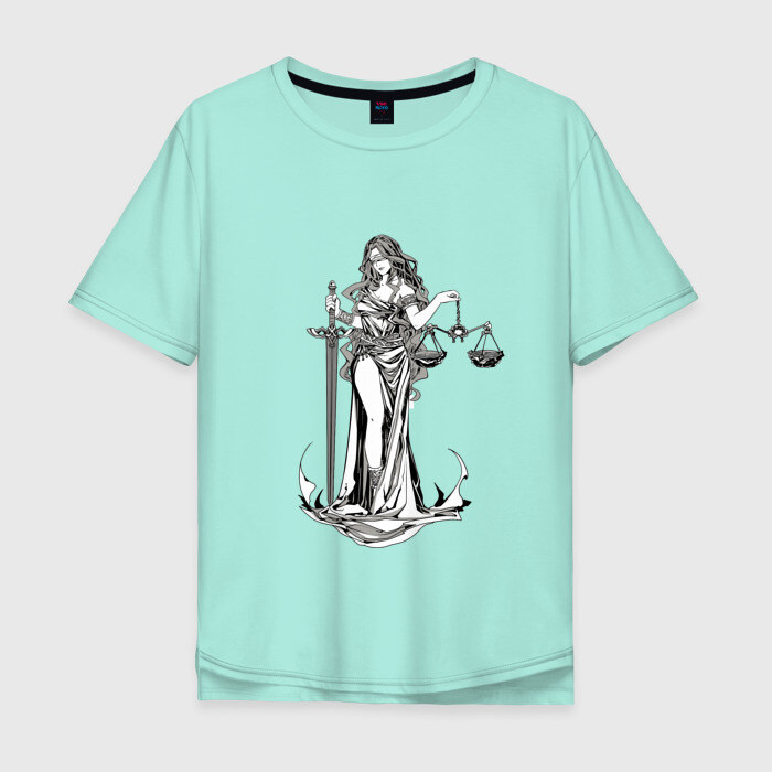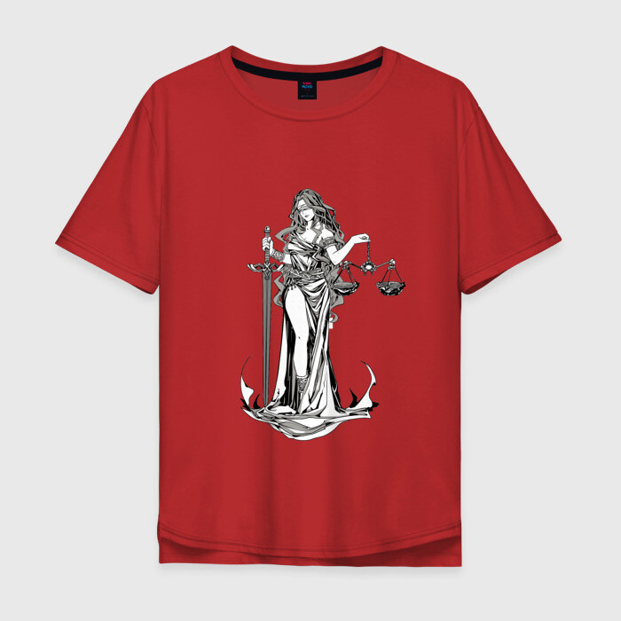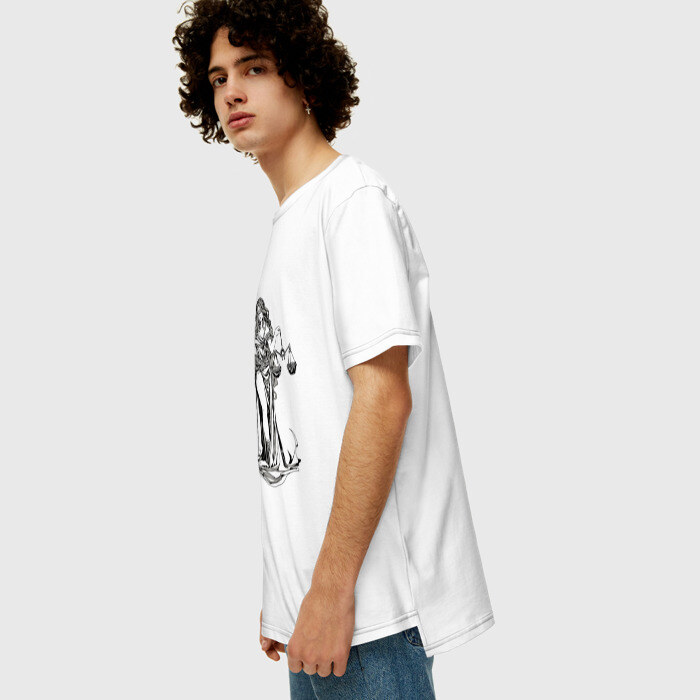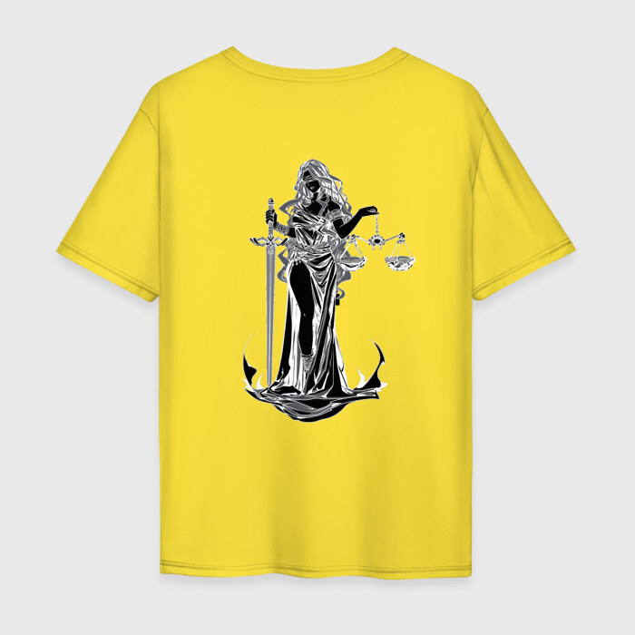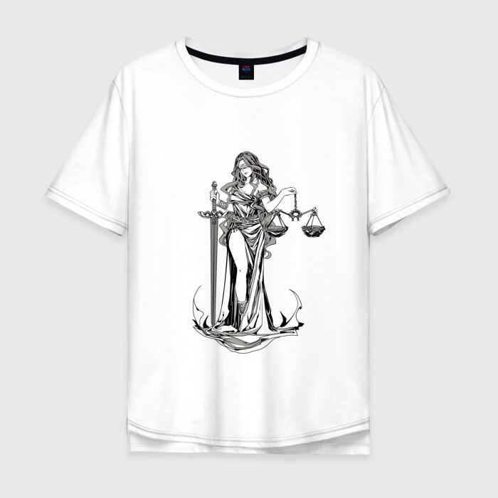 Мужская футболка хлопок Oversize с принтом Фемида двухсторонняя