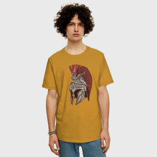 Мужская футболка хлопок Oversize с принтом Шлем Спартанца