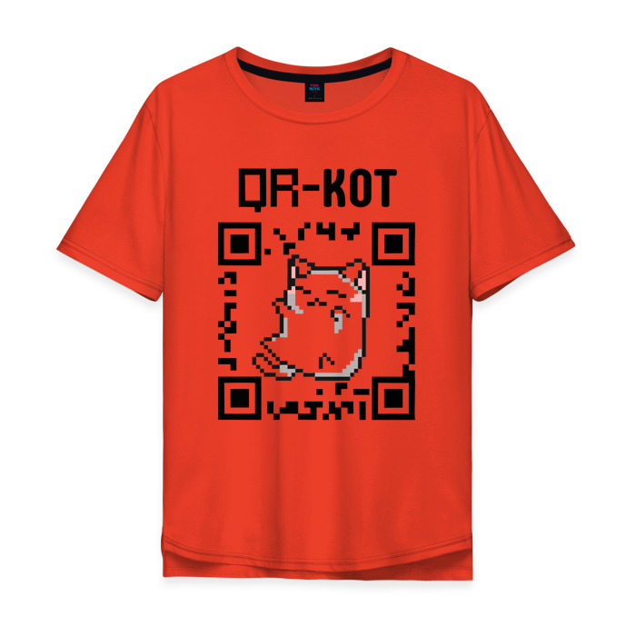 Мужская футболка хлопок Oversize с принтом QR кот | QR code