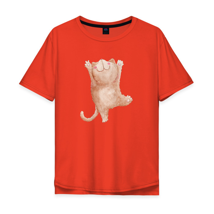 Мужская футболка хлопок Oversize Рыжий пушистый котик