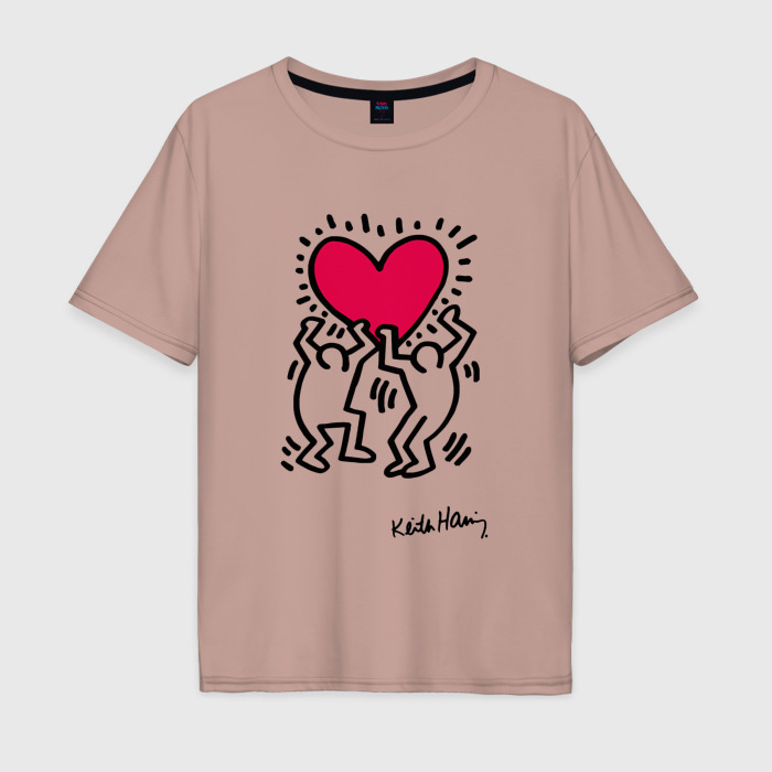 Мужская футболка хлопок Oversize с принтом Человечки с сердцем поп арт Кит Харинг