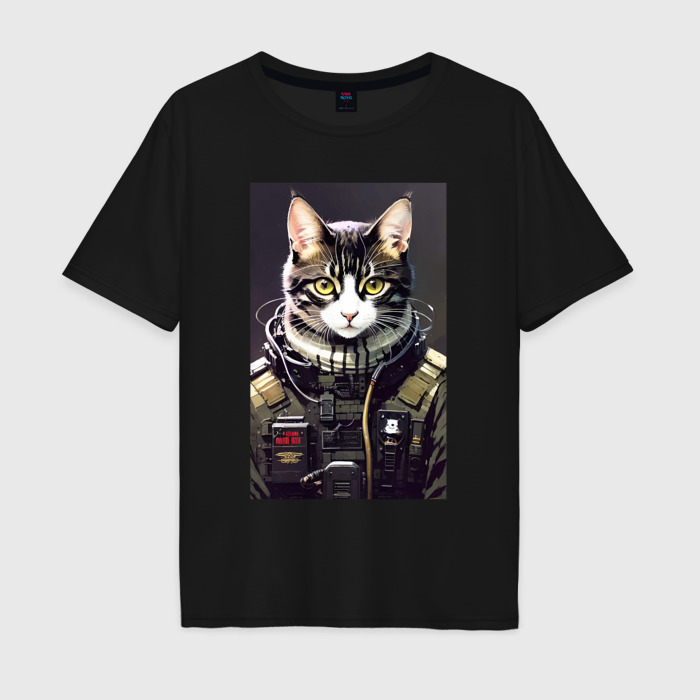 Мужская футболка хлопок Oversize Крутой кот киберпанк нейросеть