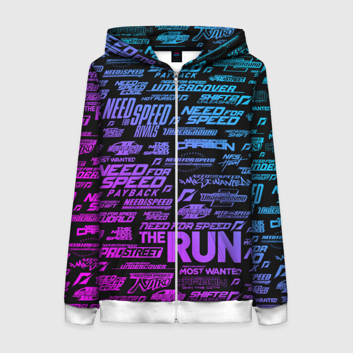 Женская толстовка 3D на молнии NFS ALL LOGOS NEON