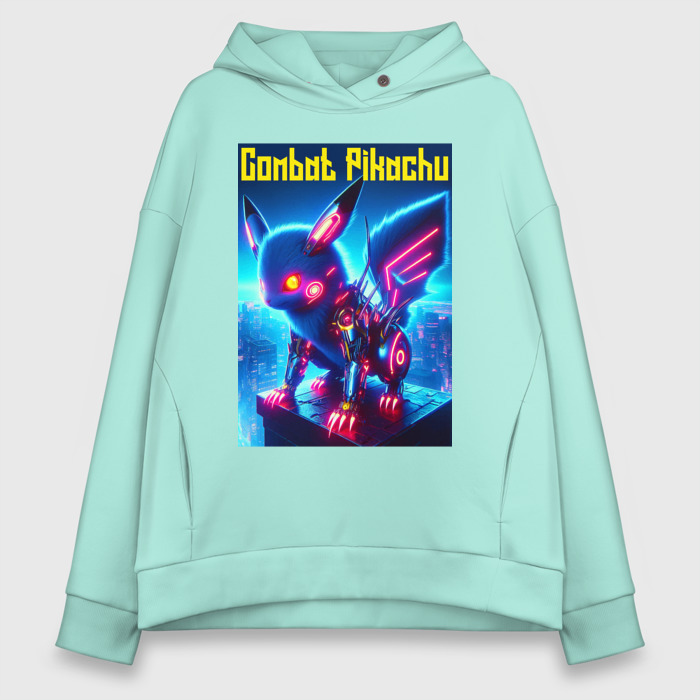 Женское худи Oversize хлопок Боевой Пикачу киборг