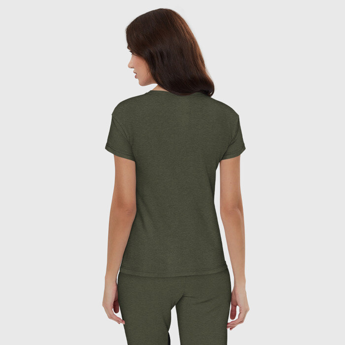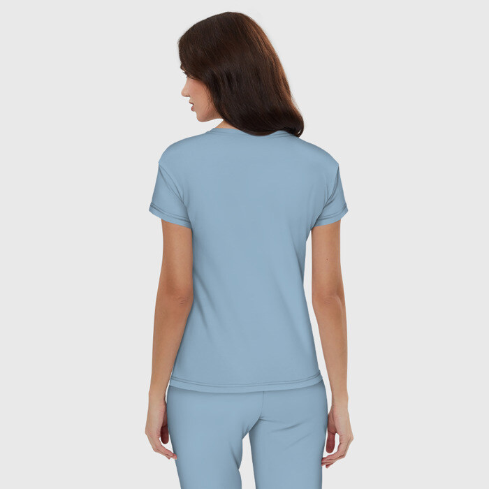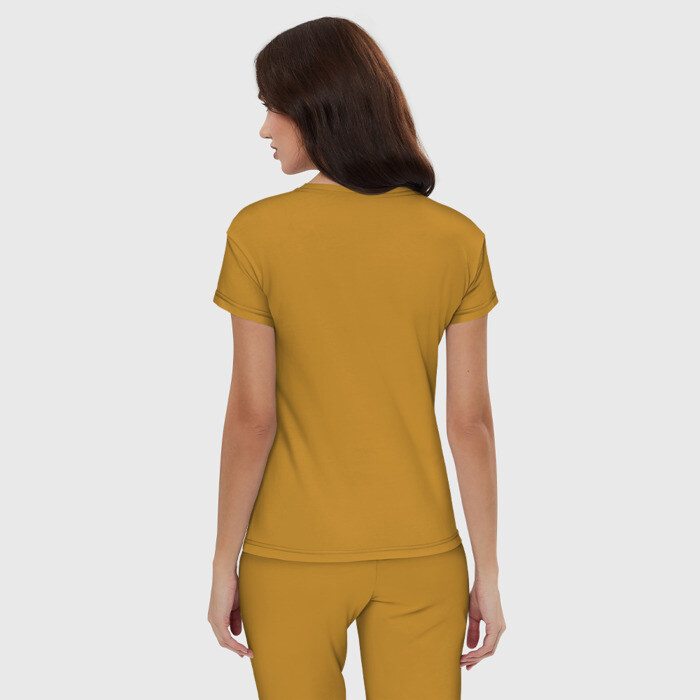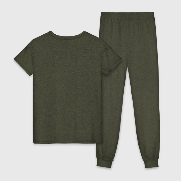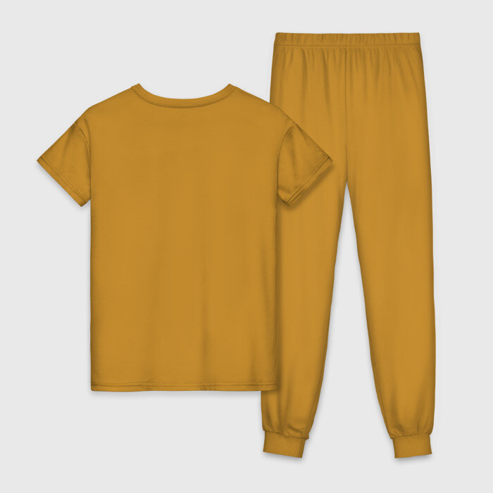 Пижама — домашняя одежда со свободным кроем, сделанная в соответствии с актуальными трендами. В такой одежде комфортно заниматься домашними делами и отдыхать, а также не стыдно выйти к гостям. Пара выполнена из мягкого дышащего хлопка одного цвета, а брюки сшиты из той же ткани, как и базовая хлопковая футболка . Принт наносится только на футболку.
