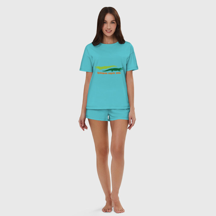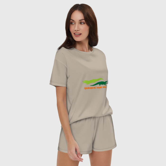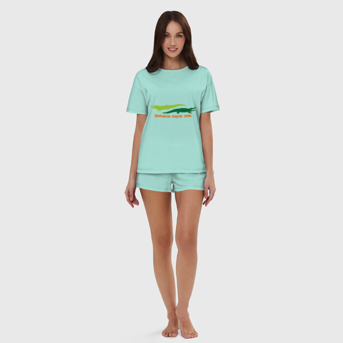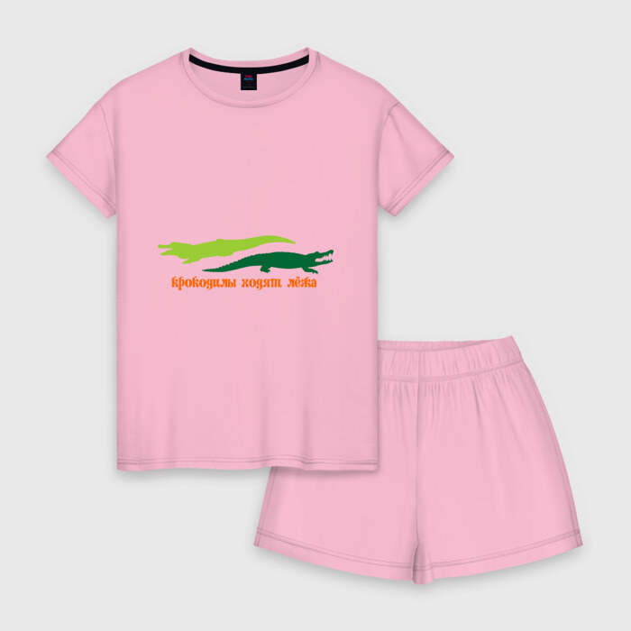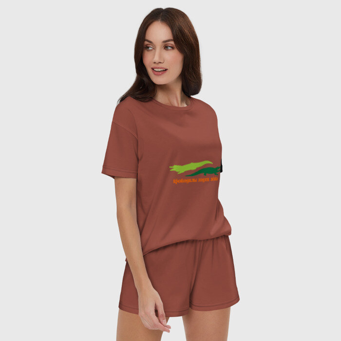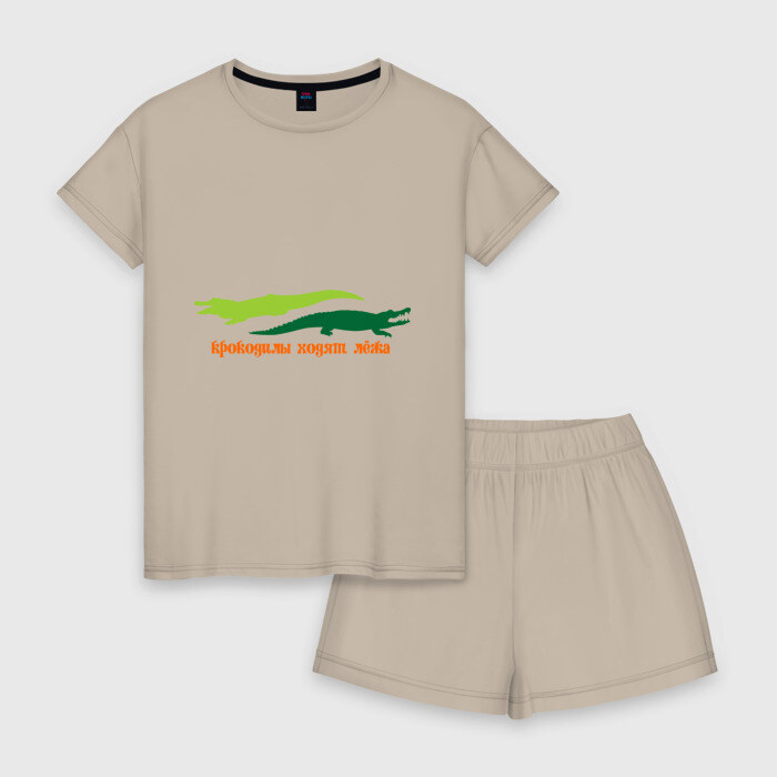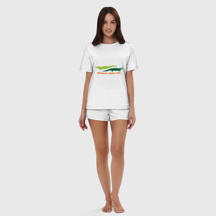 Женская пижама с шортиками хлопок с принтом Крокодилы ходят лёжа