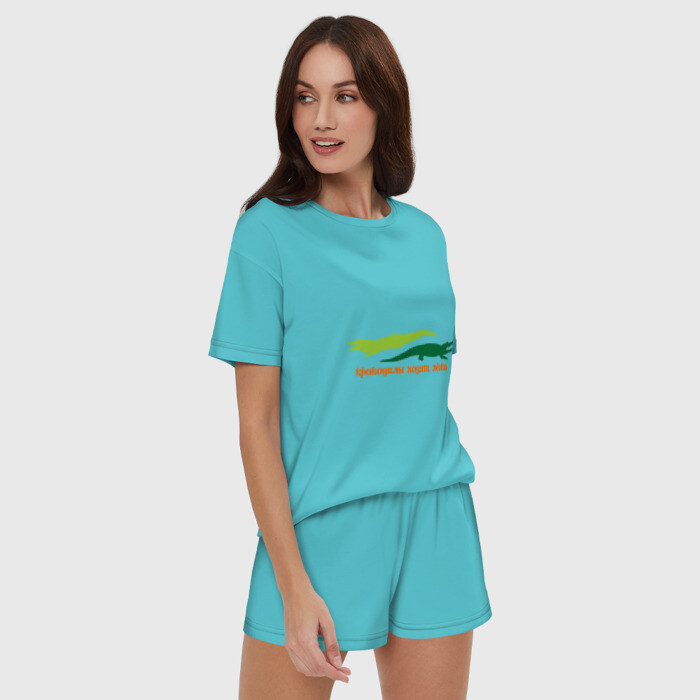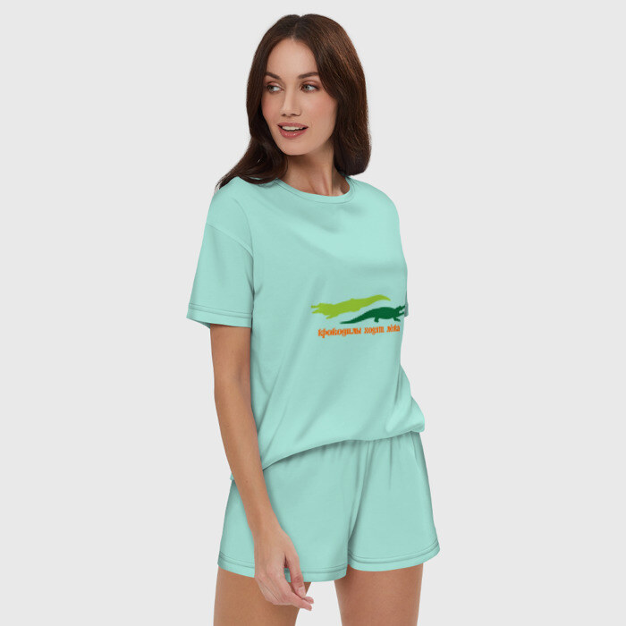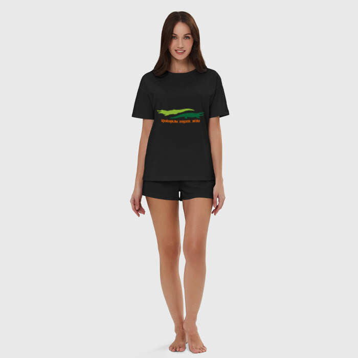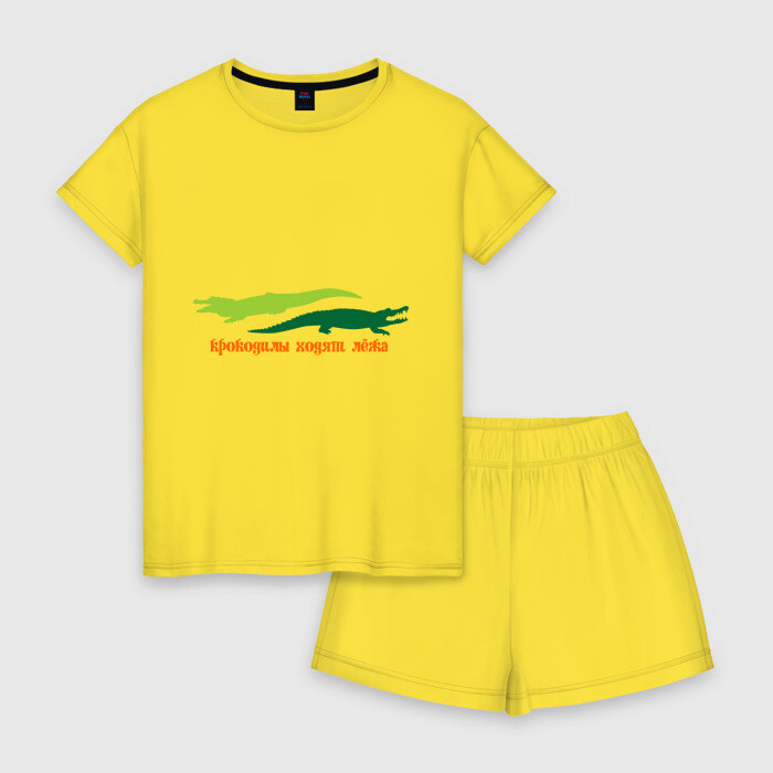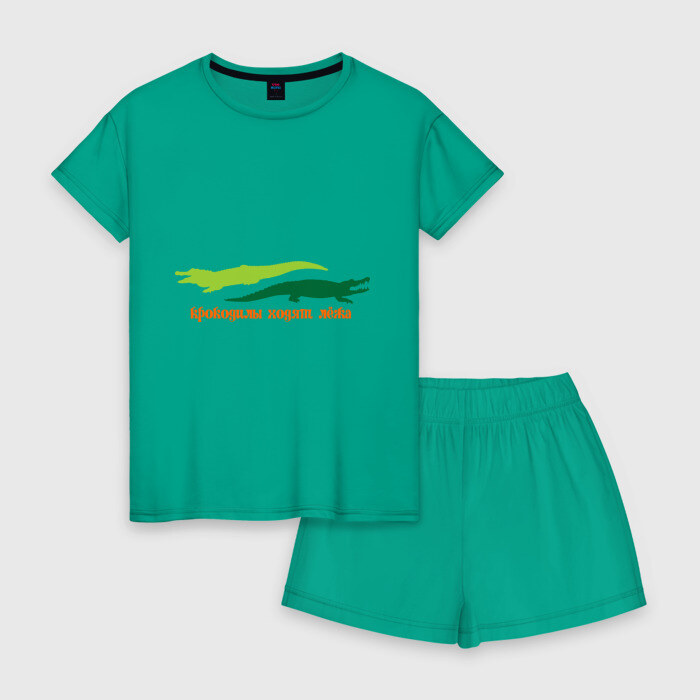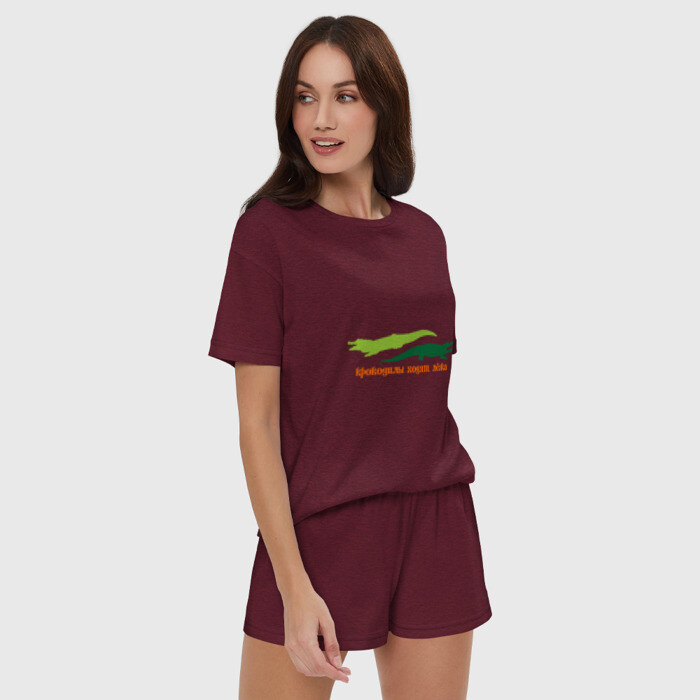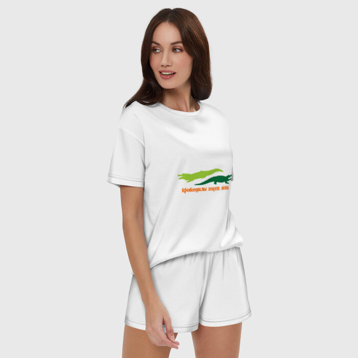 Женская пижама с шортиками хлопок с принтом Крокодилы ходят лёжа