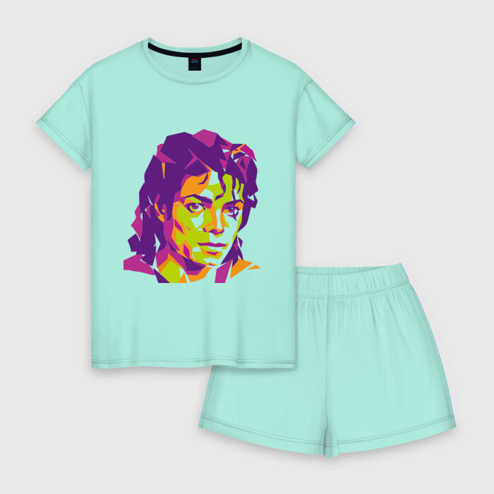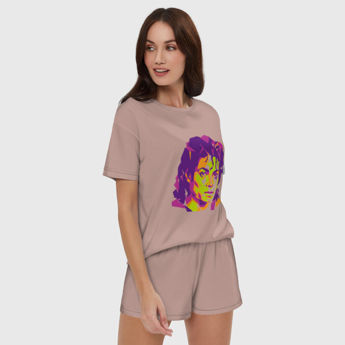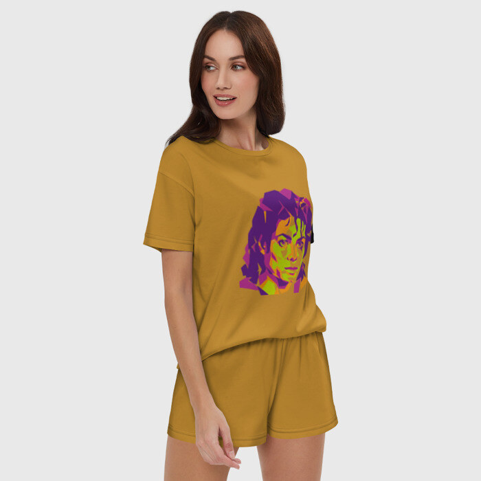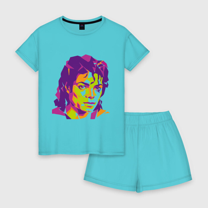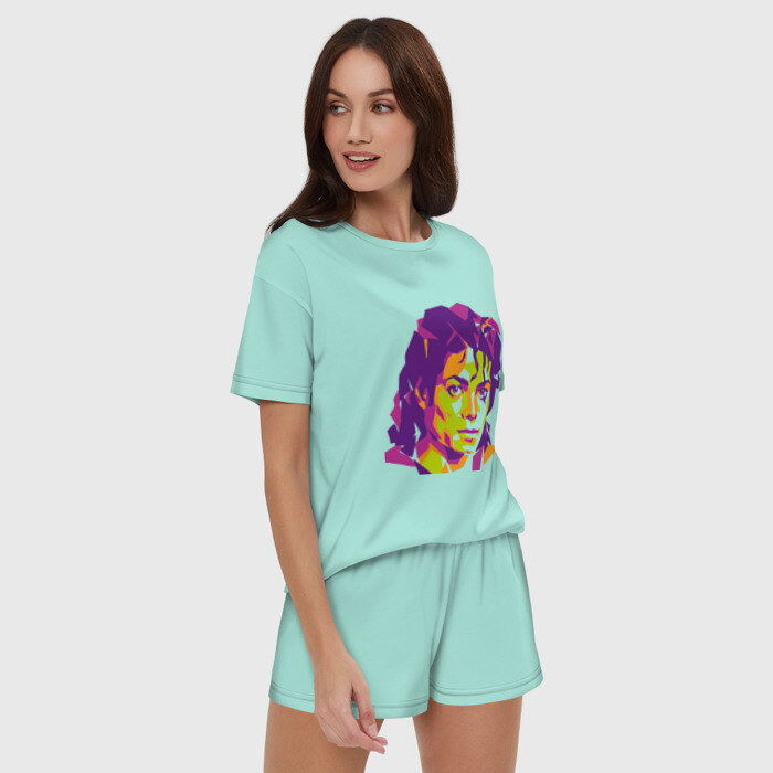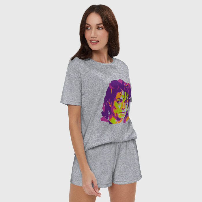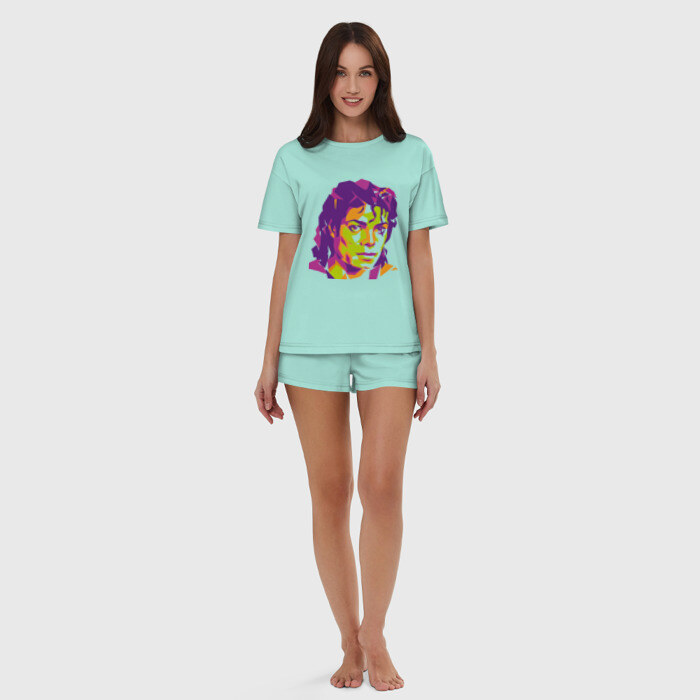 Женская пижама с шортиками хлопок с принтом Michael Jackson полноцвет