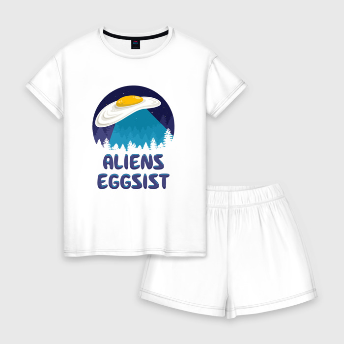 Женская пижама с шортиками хлопок с принтом НЛО яйца
