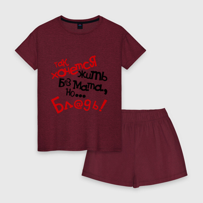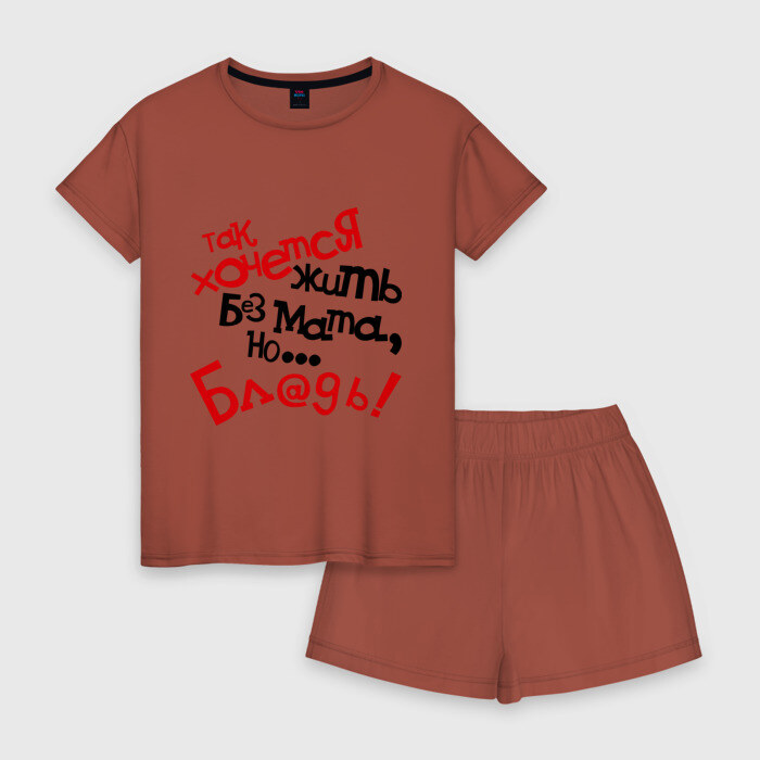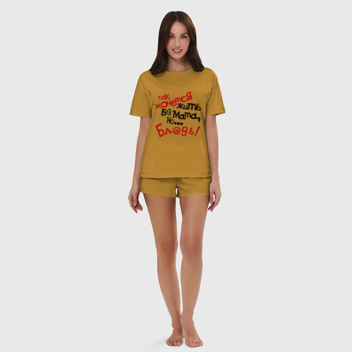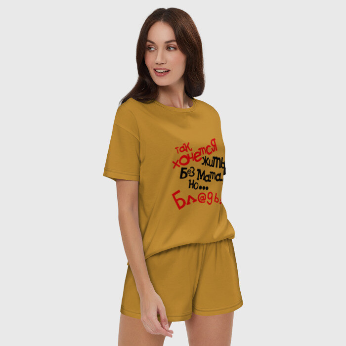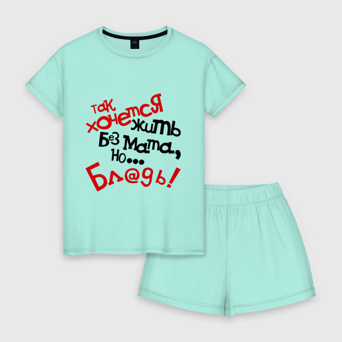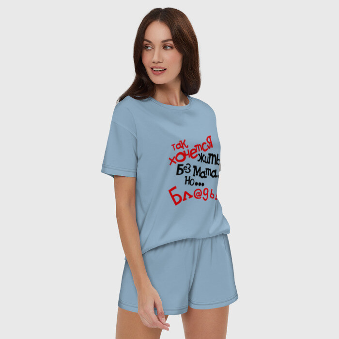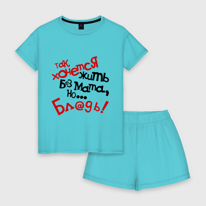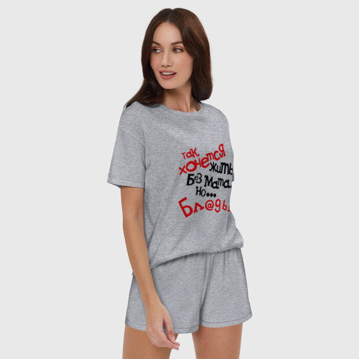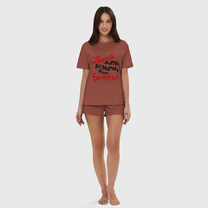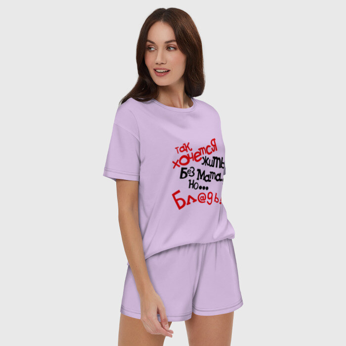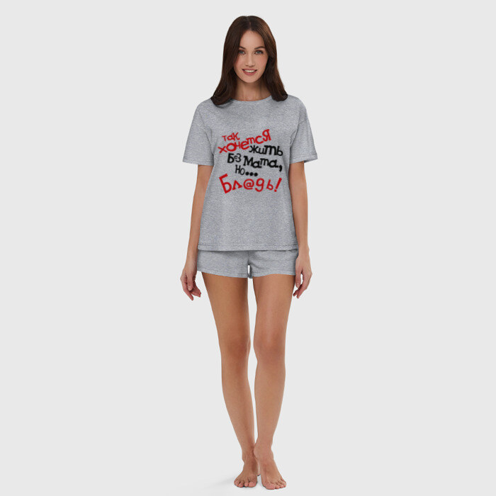 Женская пижама с шортиками хлопок с принтом Жизнь без мата