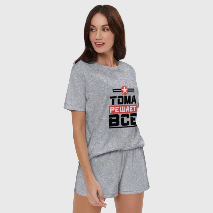 Женская пижама с шортиками хлопок с принтом Тома решает все