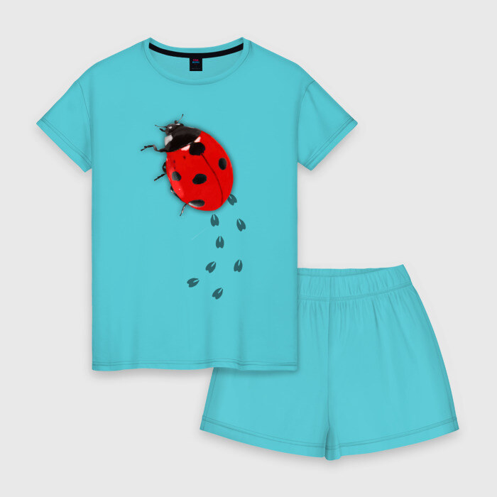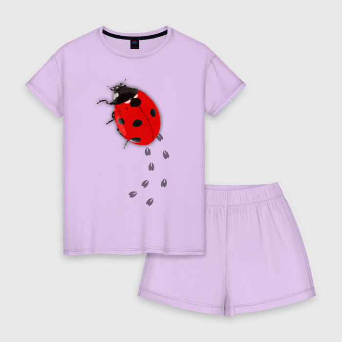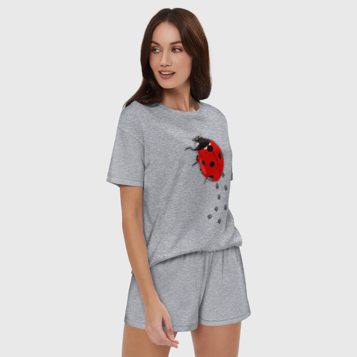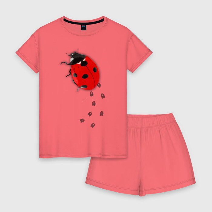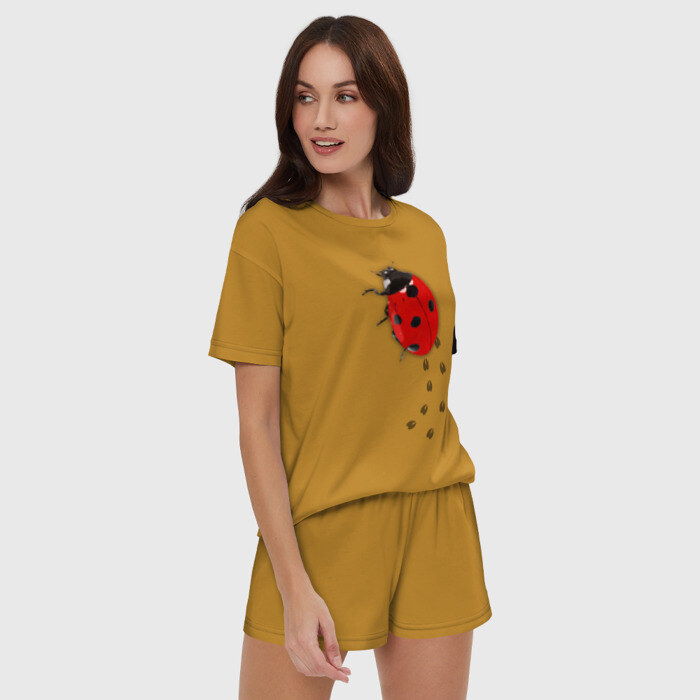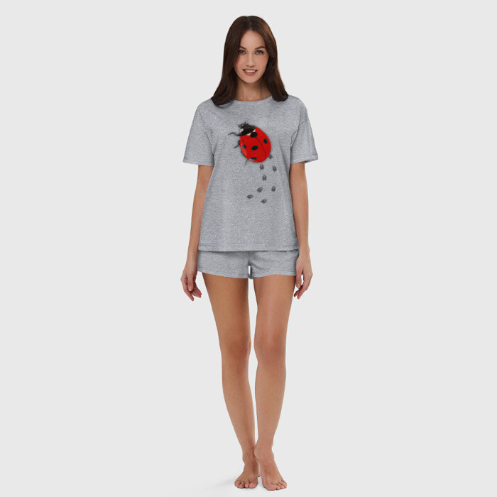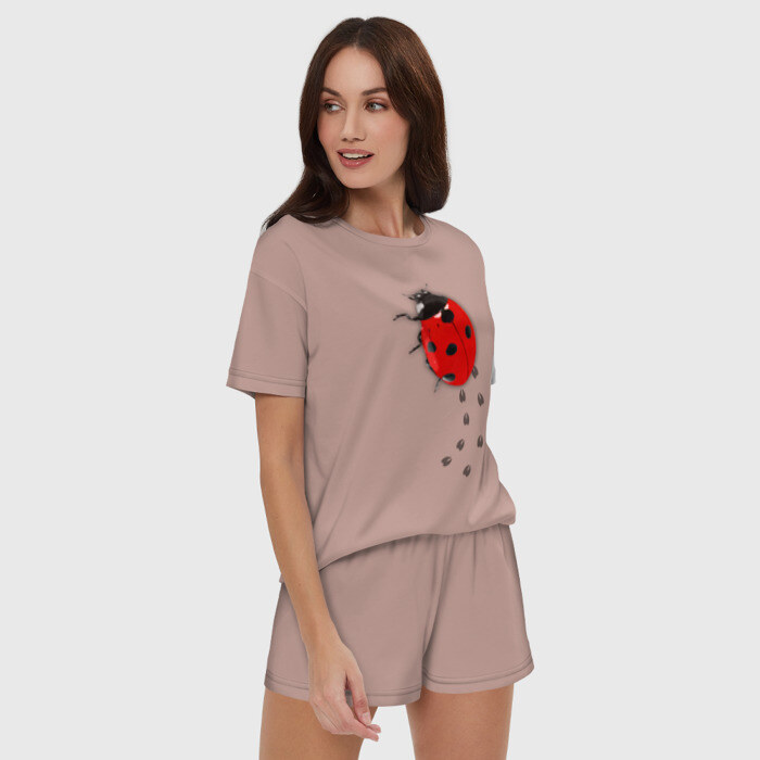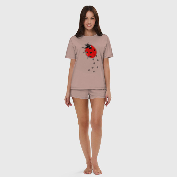 Женская пижама с шортиками хлопок с принтом Реалистичная божья коровка