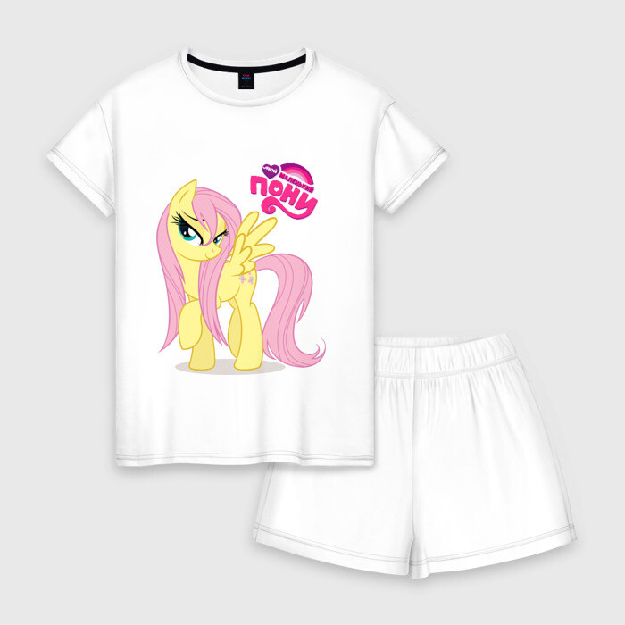 Женская пижама с шортиками хлопок с принтом Красавица Флаттершай