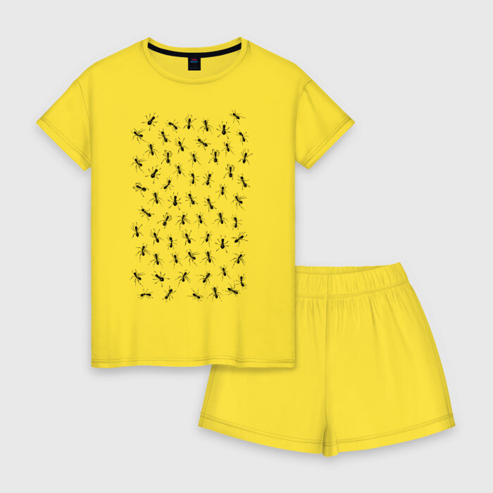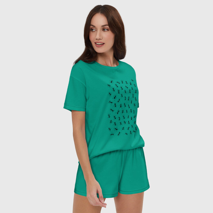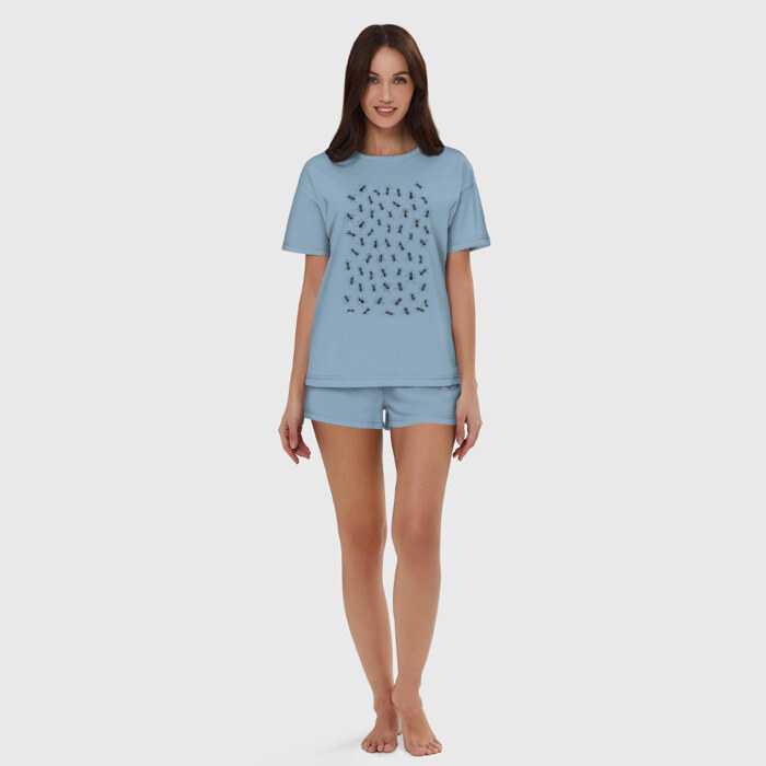 Женская пижама с шортиками хлопок с принтом Армия мурашей