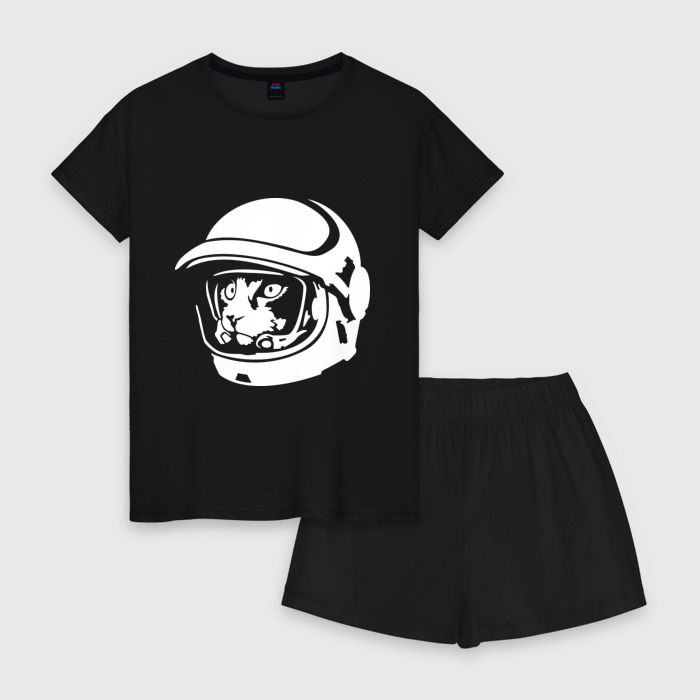 Женская пижама с шортиками хлопок с принтом Кот космонавт