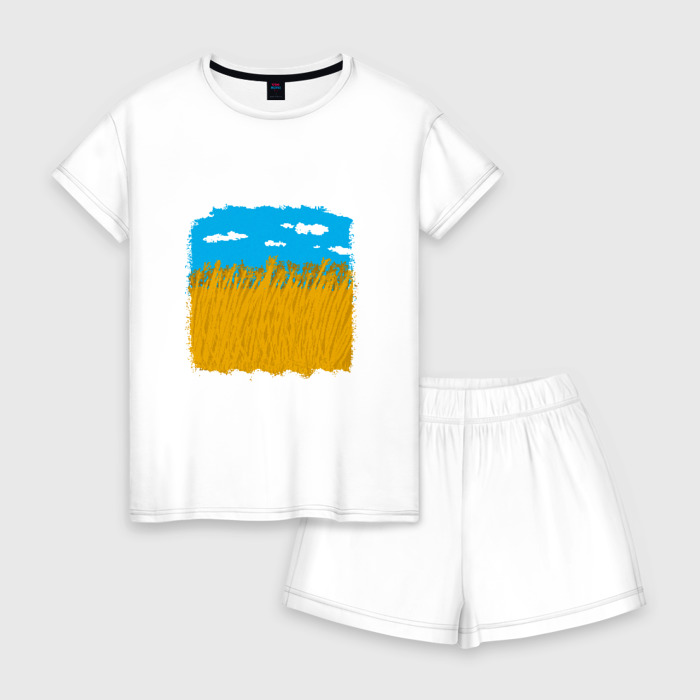 Женская пижама с шортиками хлопок с принтом Украина в колосьях