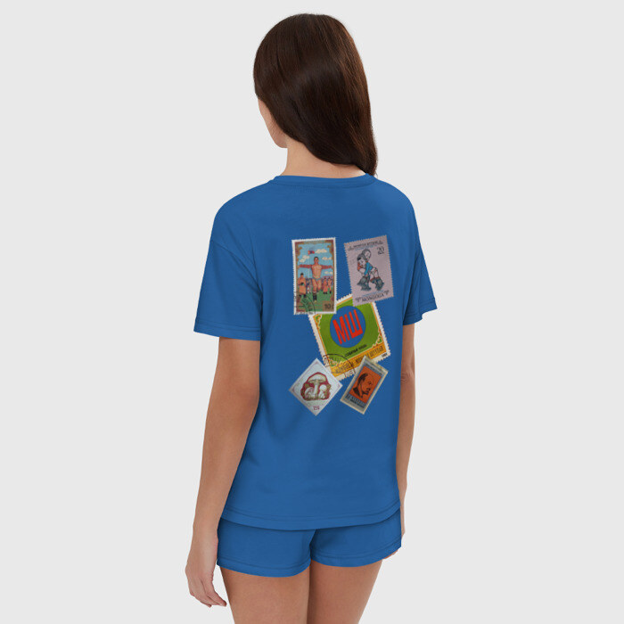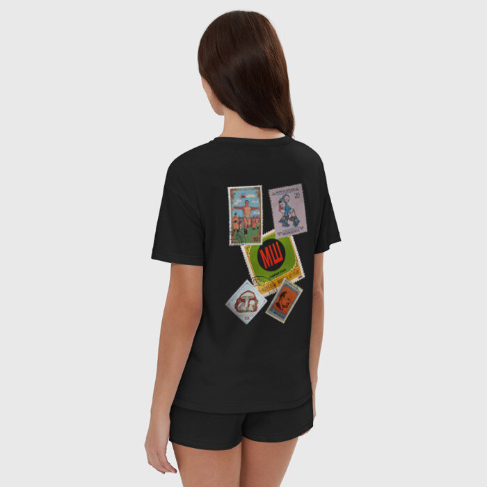 Пижама сшита из мягкого хлопка. Базовую хлопковую футболку дополняют такого же цвета шорты свободного кроя с мягкой резинкой. Принт наносится только на футболку. Пара может стать удобной одеждой как для дома, так и для сна.