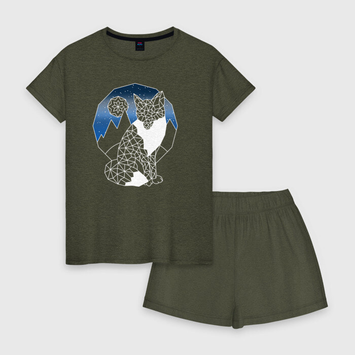 Женская пижама с шортиками хлопок с принтом Геометрическая лиса